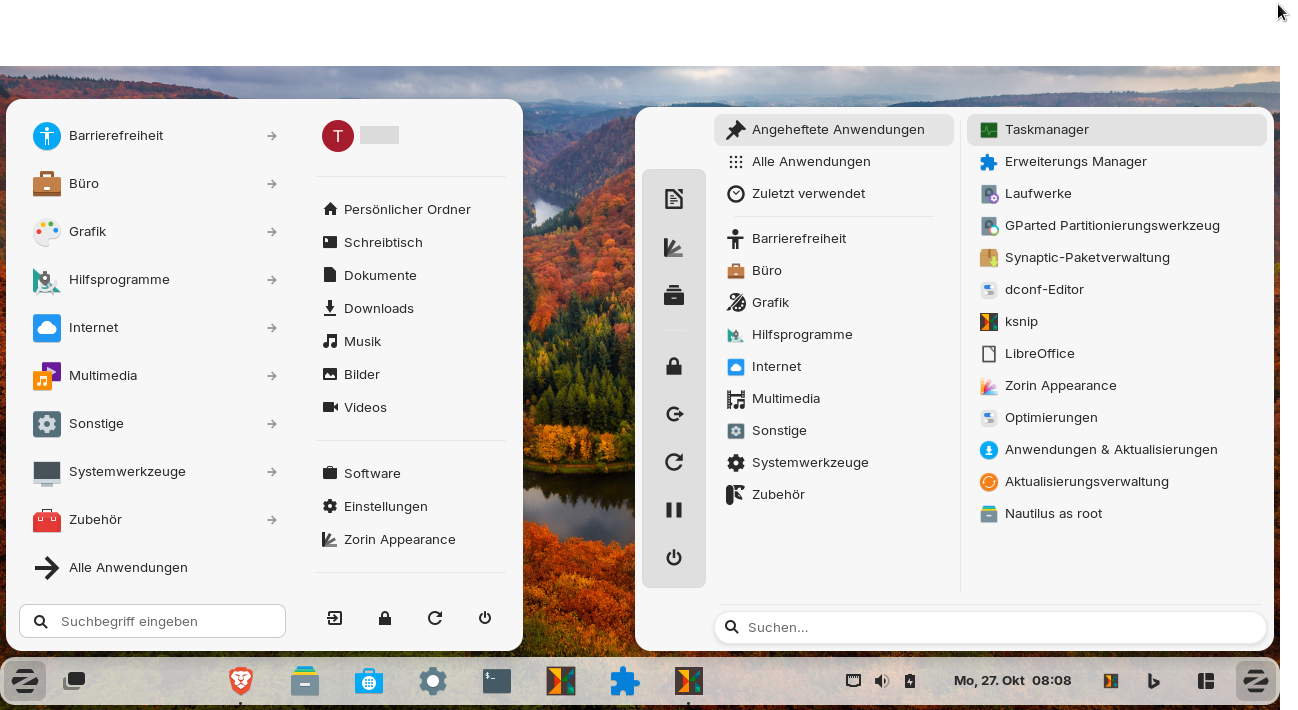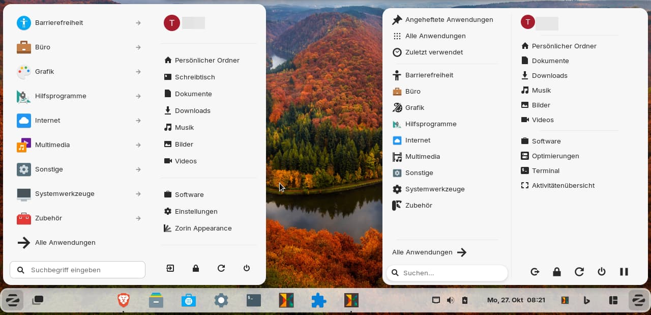On the left side of the panel is the original Zorin menu, on the right side arc menu which you can customize with many various layouts.