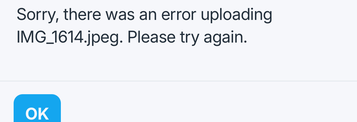 The image you are uploading may be too large. Have you tried resizing it or zooming in on just the relevant portion of the image?