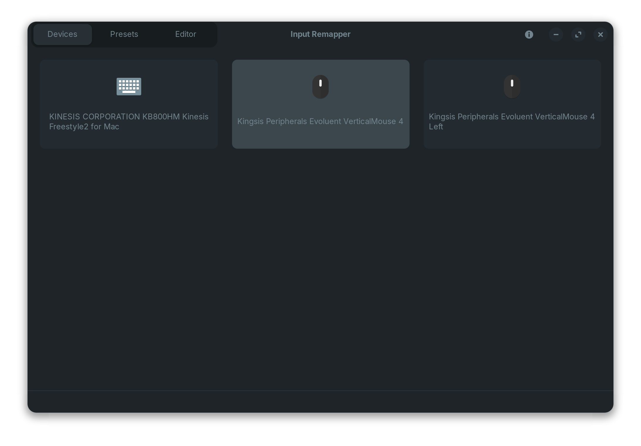 It says "no input configured" yet I just selected the Kingsis Peripherals Evoluent VerticalMouse 4 on the first screen in order to get to this screen, so I did actually select it: