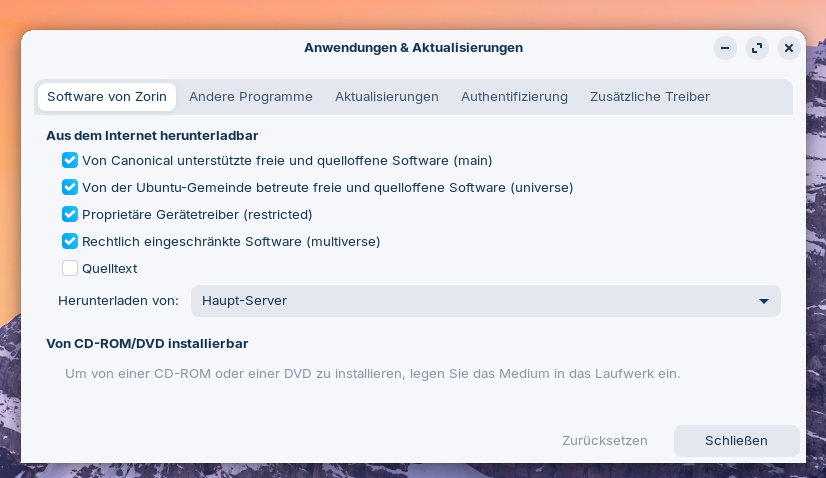 This are the sources. It ist normal that there are no universe/multiverse repositories? Why are they missing? I didn't change anything here and use main server... All updates made.