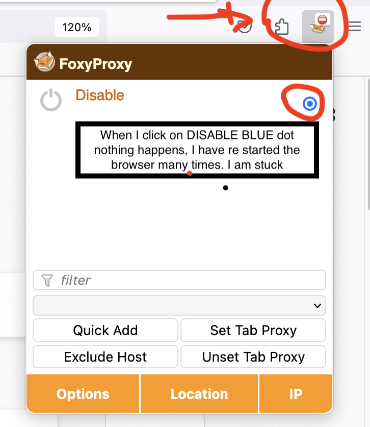 I'd try uninstalling FoxyProxy, purging any directories of its configuration files, then reinstalling FoxyProxy. Looks like something glitched and it's not able to start.