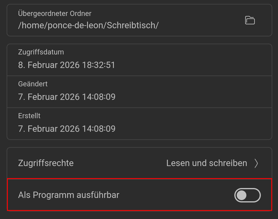 I downloaded the tar.gz again, unpacked, started as a program from the right-click-menu > same result, program not listed in installed software.