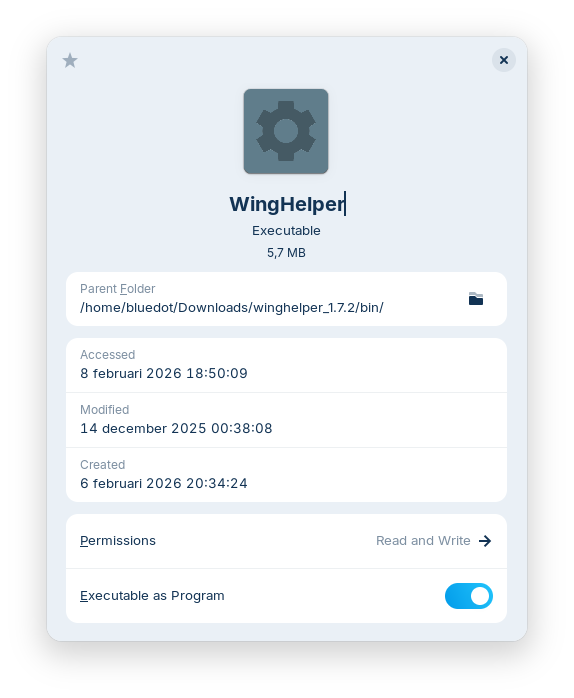 In the /home/bluedot/bin/WingHelper-folder there is an executable file, see screenshot.
