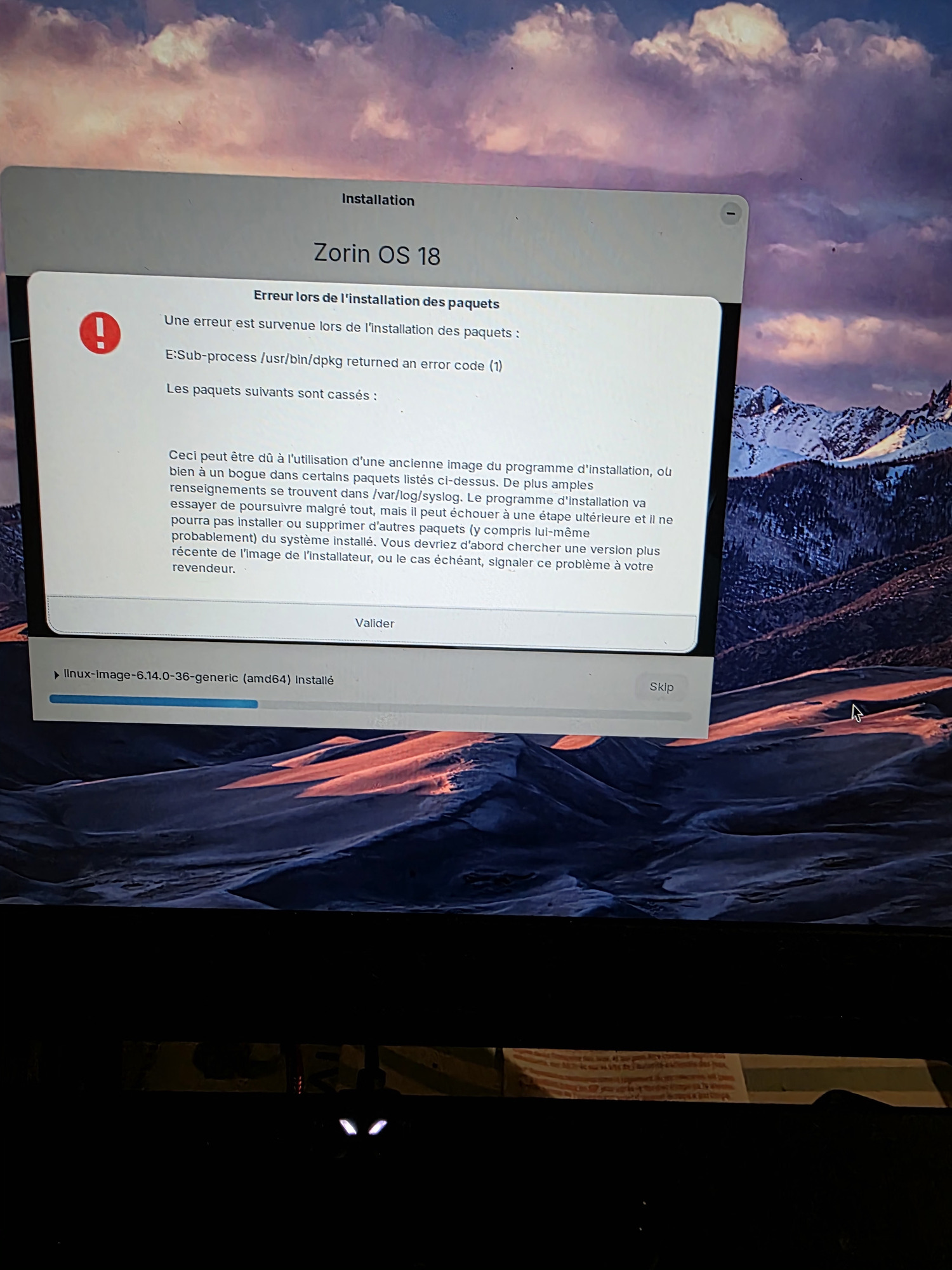 J'ai démarré sur une image live Ubuntu 24.04.3 j'e me suis envoyé le lien de l'ISO Zorin OS 18 Pro je l'ai vérifié avec le snap GtKHash c'était ok , et ensuite j'ai téléchargé popsicle en appimage, j'ai créé la clé Zorin OS 18 Pro avec , j'ai après formaté mais deux SSD deux fois ( et une troisième un peu plus hard , mais pas jusqu'à u bout juste 3 ou 4 minutes) puis formaté deux fois, j'ai éteint le laptop, je suis allée dans le UFI j'ai supprimé les certificats un par un , et après je l'ai mis a jour pour qu'il se réinstalle, j'ai redémarré le laptop avec la clé Zorin OS 18 Pro et la l'installation et aller jusqu'au bout sans la moindre erreur, la tout fonctionne parfaitement, j'ai bien choisi l'installation avec les. Driver NVIDIA wifi et autres et les mise à jour, bref la ça fonctionne parfaitement,