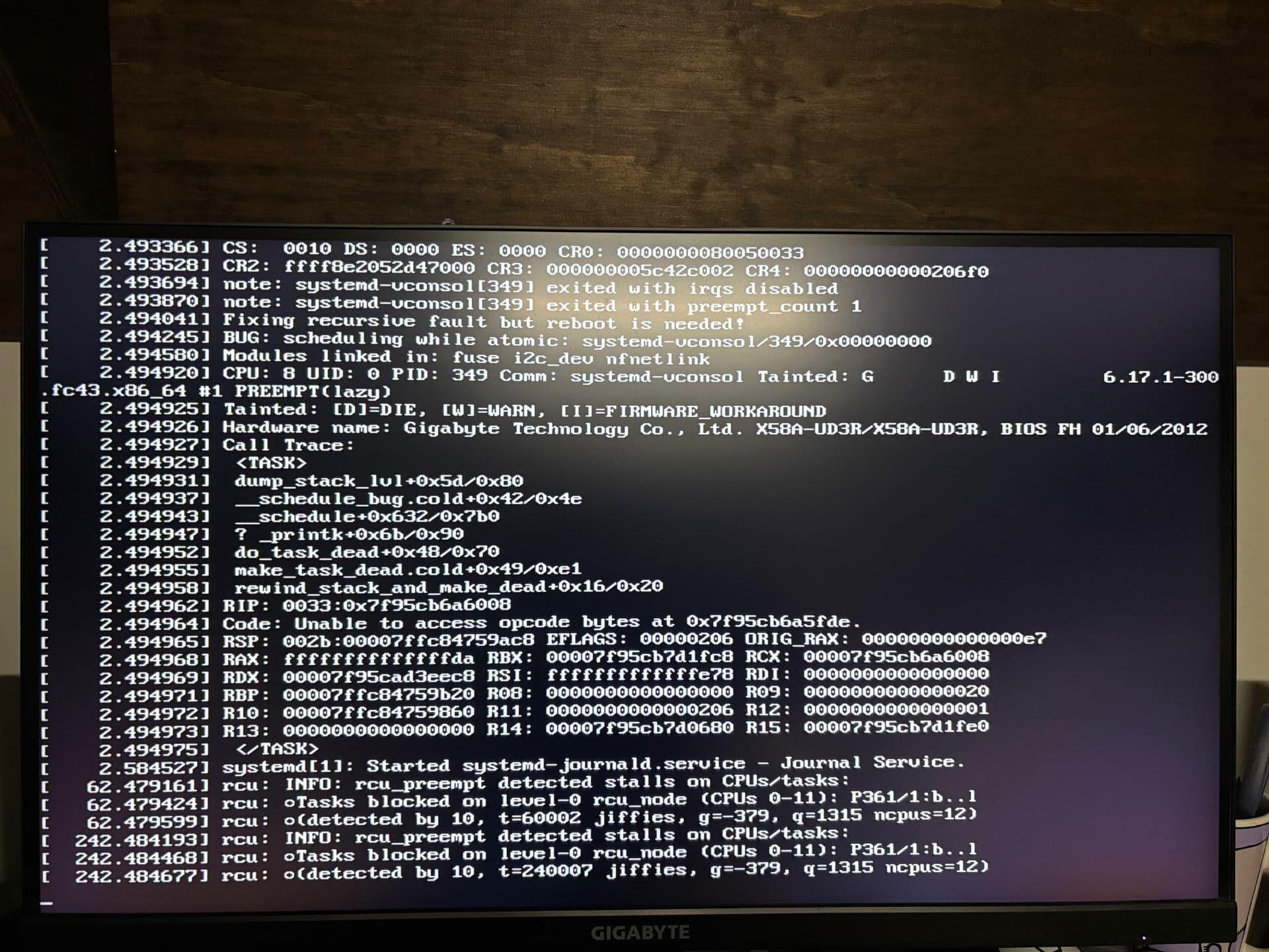 Gigabyte X58A-UD3R (BIOS version FH <- latest stable version)