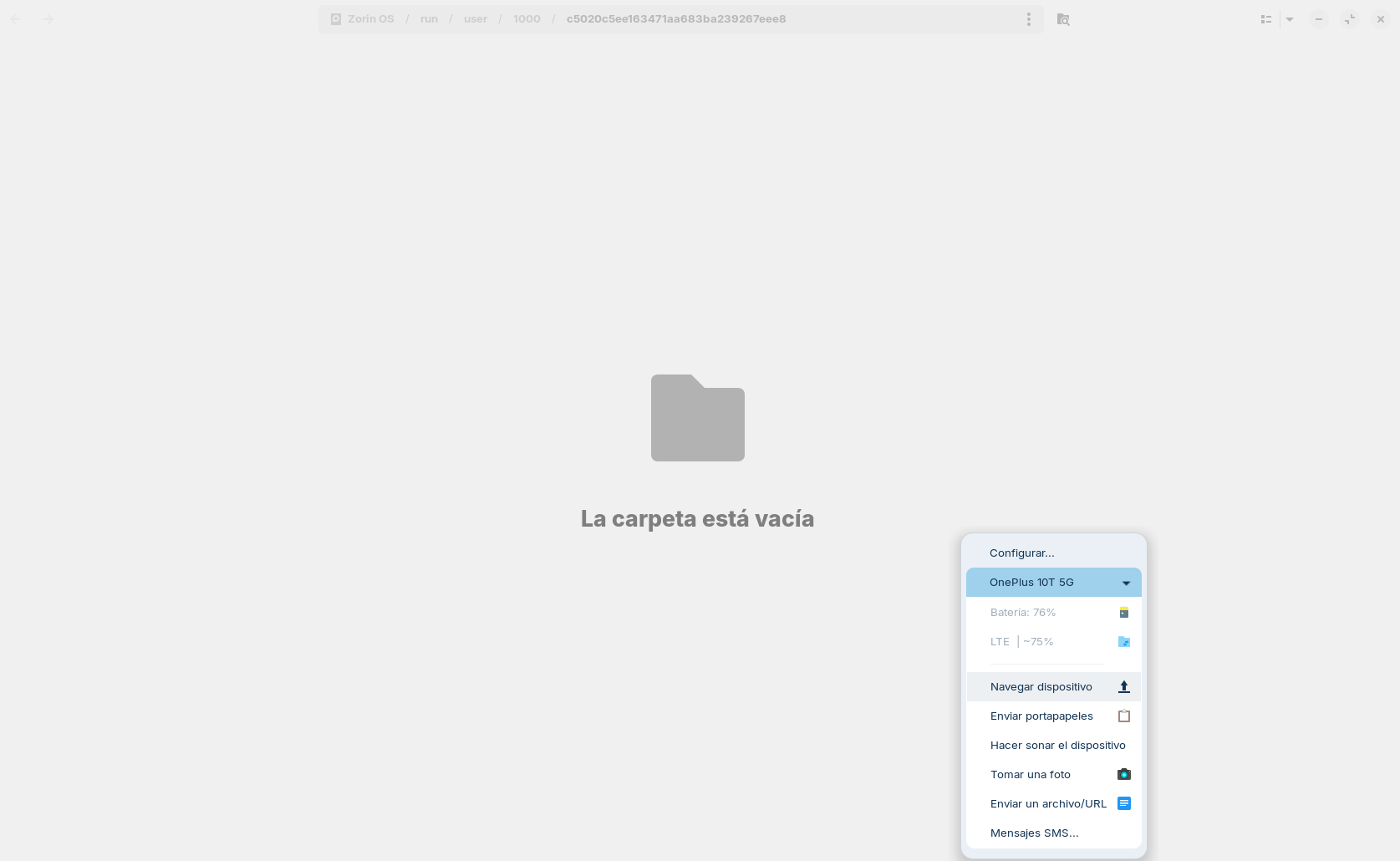 I'm having some trouble accessing my phone's storage through Zorin Connect.