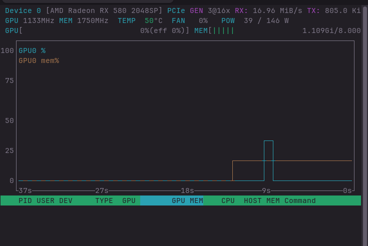 One other thing I've encounter upon. Is that when a game does launch (in this case, a steam game called MUCK) it's very laggy. When I run nvtop, the GPU usage is 0%.