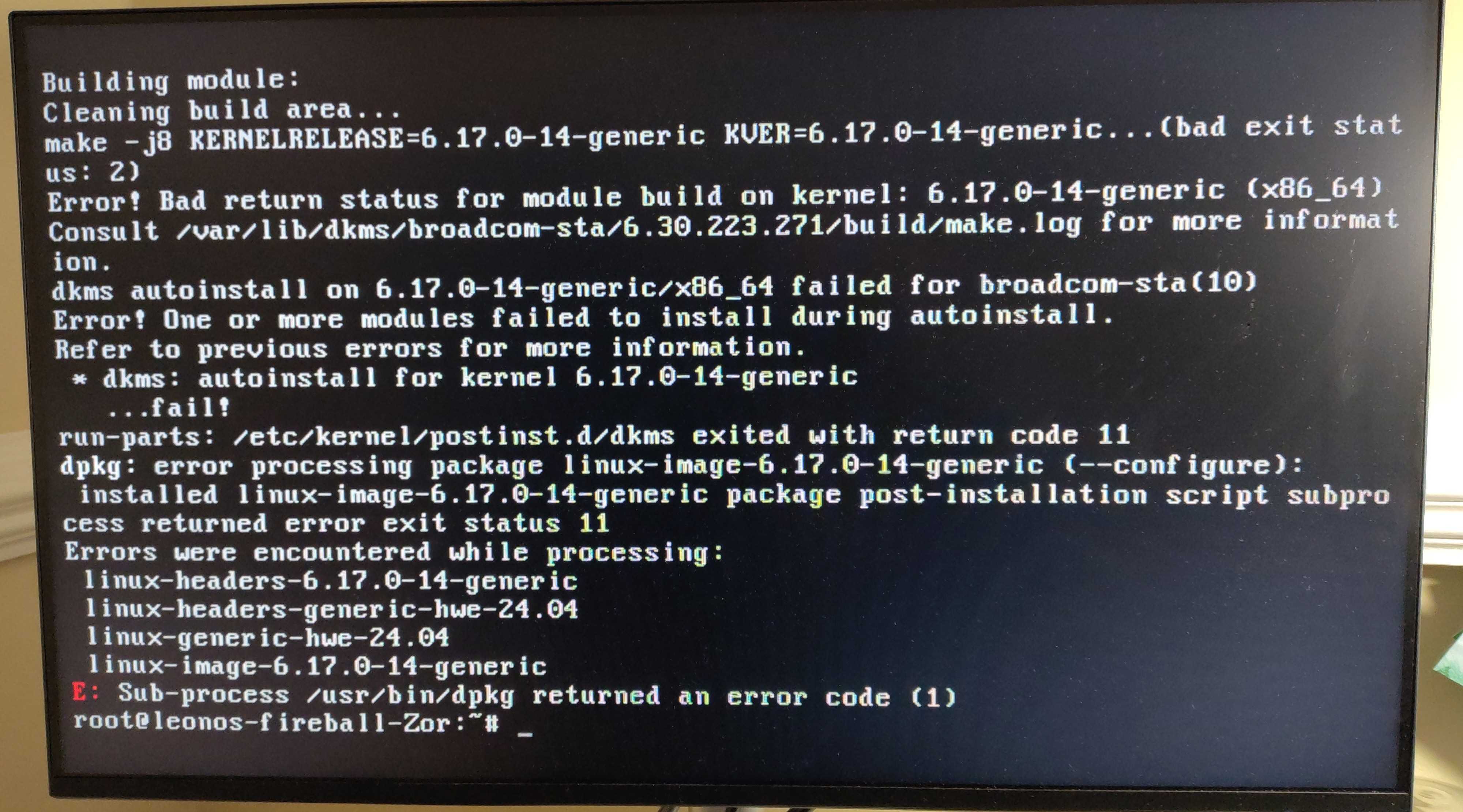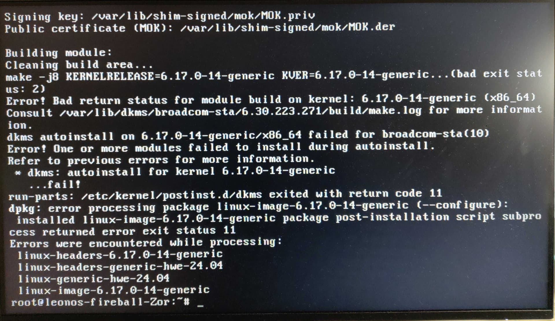 Error! Bad return status for module build on kernel: 6.17.0-14-generic (x86_64)