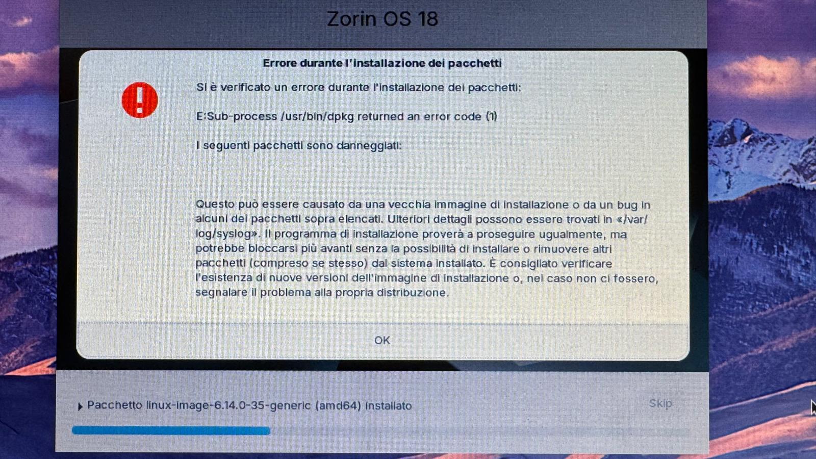 I also tried installing it from the command, not from the terminal, line but there's nothing to do. I'll keep it like this. The problem I'm having now, however, seems more serious because it occurred during an automatic system update. I just launched it. In the details, which I always read, I saw that there was a kernel update of over 500 MB, plus various updates including 390. Halfway through the installation it crashed with the screen I posted and when I rebooted I found a surprise.