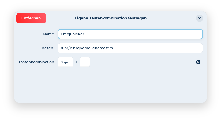 Is it possible to set up a keyboard shortcut for an emoji picker in Core 18 (as in Windows: "Windows key + dot") ?
