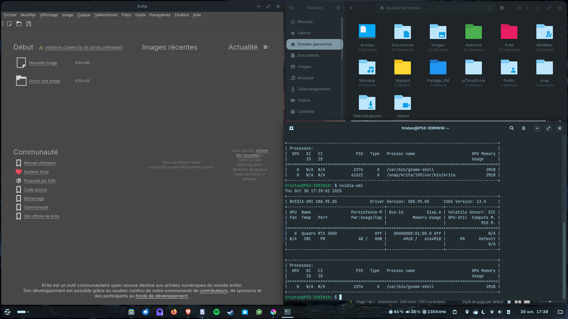 With Zorin 18, if I try the command nvidia-smi to verify if Krita or Kdenlive for instance, are launched from dedicated GPU, I have any returns from the command line if these have been installed with Flatpak ; but it seems to work if they were installed from Snap