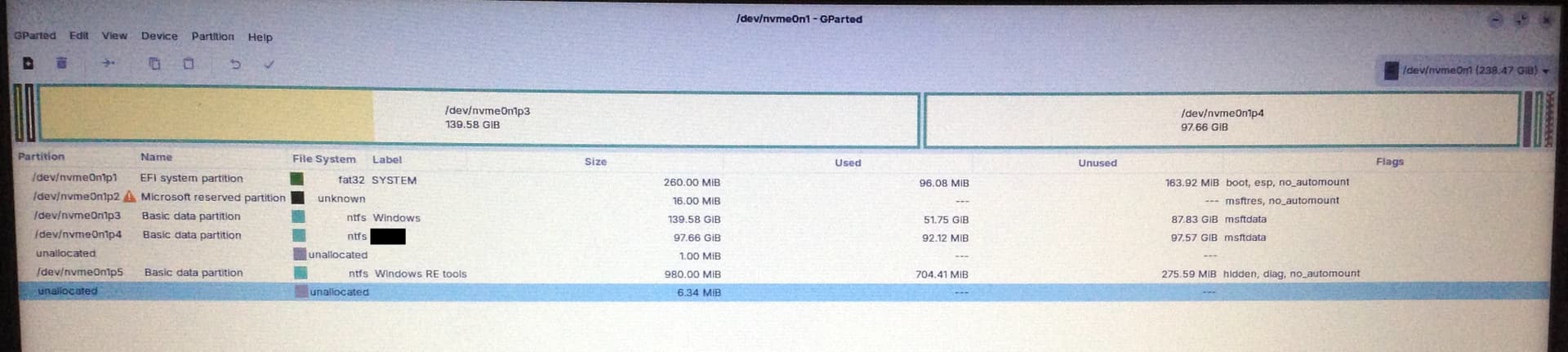 I then canceled the installation and took a closer look at the SSD partitioning. In GParted: