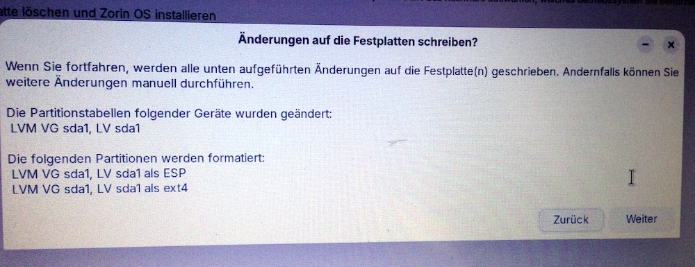 Apparently, this is the “D” partition, which it now wants to subdivide again. But I don’t want that, otherwise I won’t have enough space for Zorin. Zorin is supposed to be the main system.