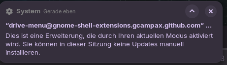 System Just Now "drive-menu@gnome-shell-extensions.gcampax.github.com"...