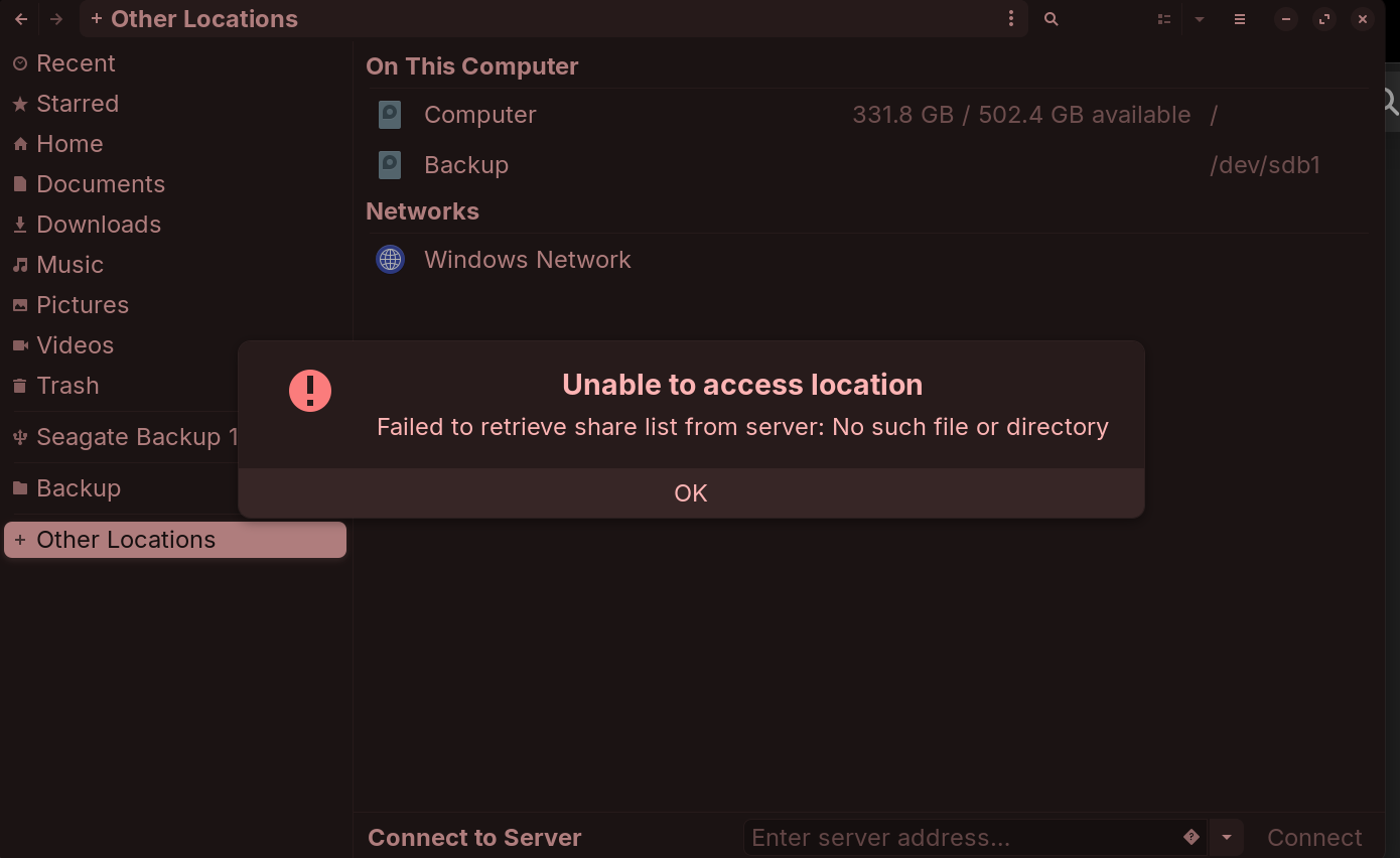 I suspect that the application you launched assumes you are trying to connect to a Windows Network.