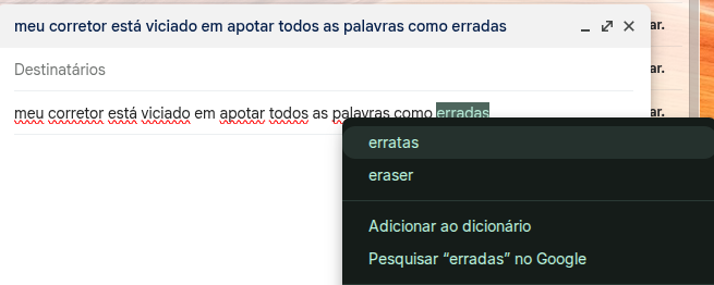 I'm using Zorin OS 18 on a Lenovo laptop and my system is flagging every word I type as misspelled. This must be related to the spell checker. I don't know how to fix it. My native language is Portuguese, and the system insists on flagging all words as misspelled and suggesting corrections in English, which is quite annoying.