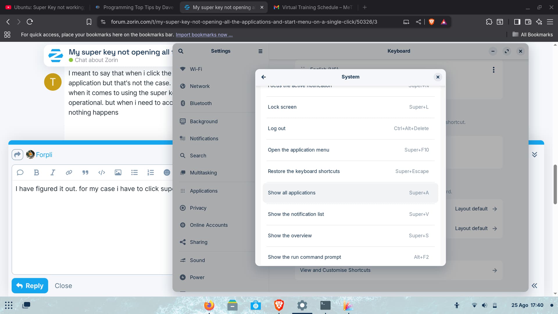 I have figured it out. for my case i have to click super key in together with A as indicated on the show all application. Thanks for the help fam.