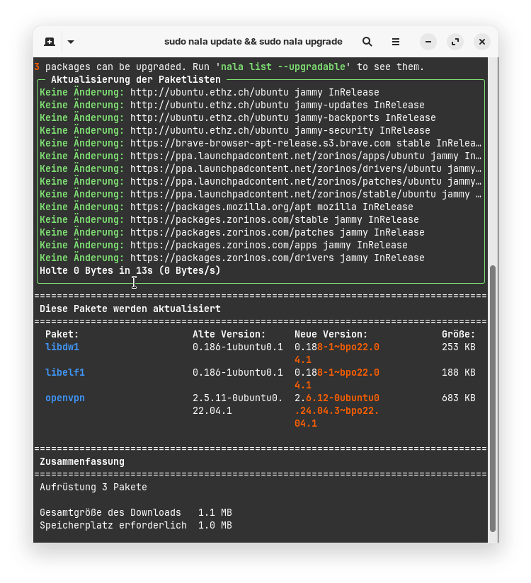 I like the colorful and clear presentation of the terminal output of nala, e.g. when updating the system.