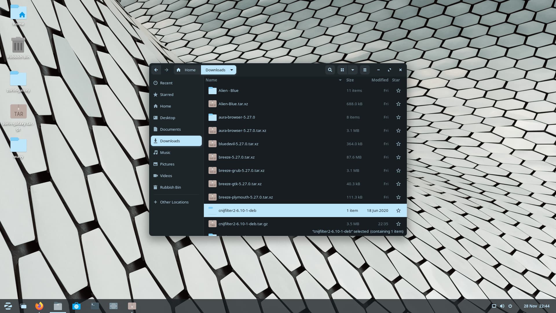 The download is a .tar.gz file - you need to extract the .deb by using Ark and will be the first option open to you upon right-clicking it. Extract it within the Downloads folder: