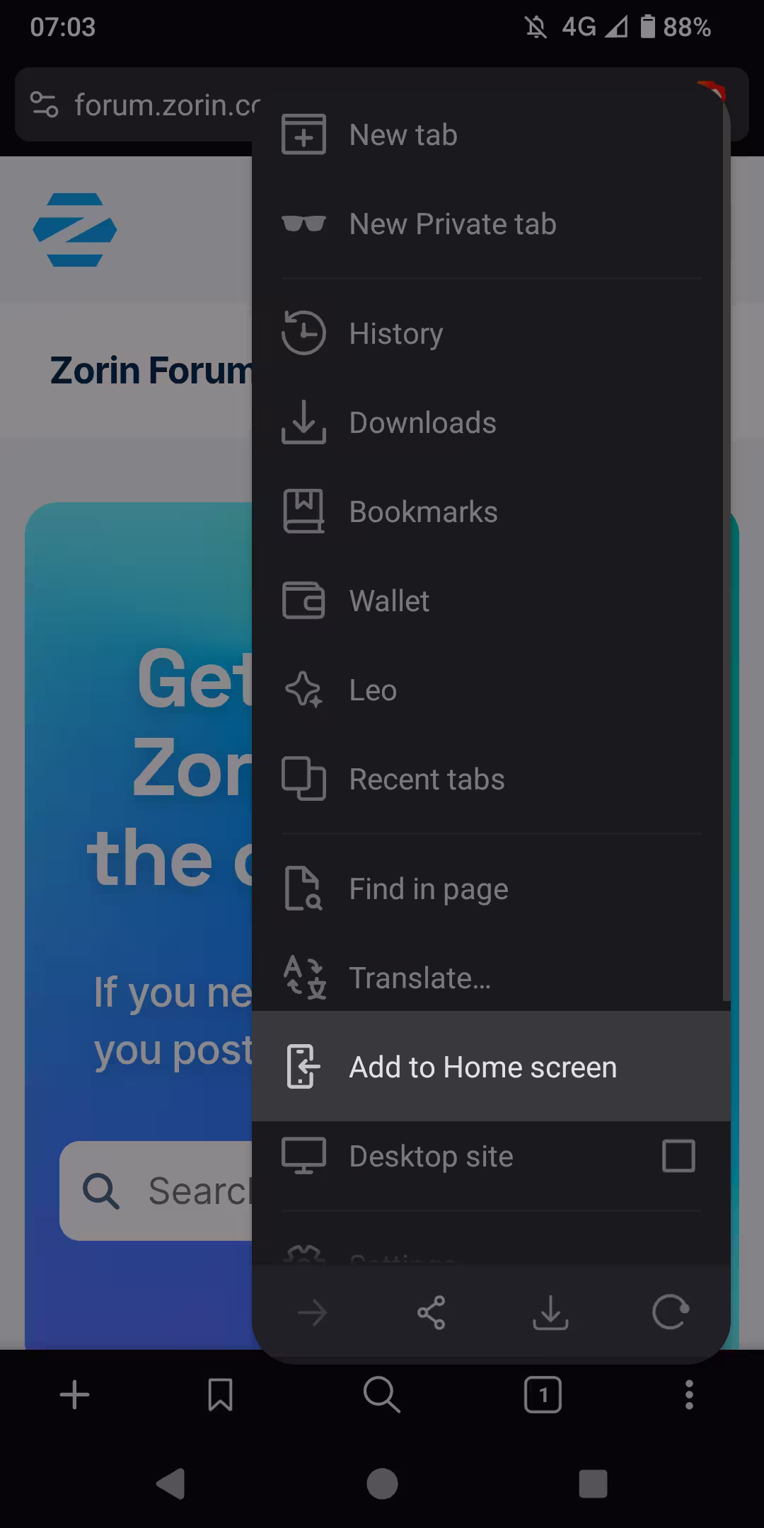 Open the forum webpage, then click on the three points at the top right an choose >add to start screen.