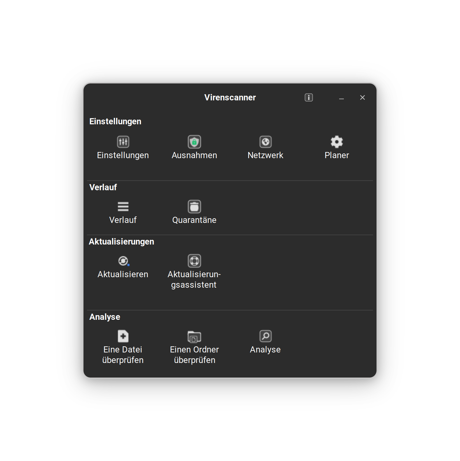 You see, it is a simple Interface. You have a Settings Option where You can set up a couple Things like automatic Updates and Scan Stuff. And at the Bottom, You have the 2 Options for scaning a File and scaning a Directory.