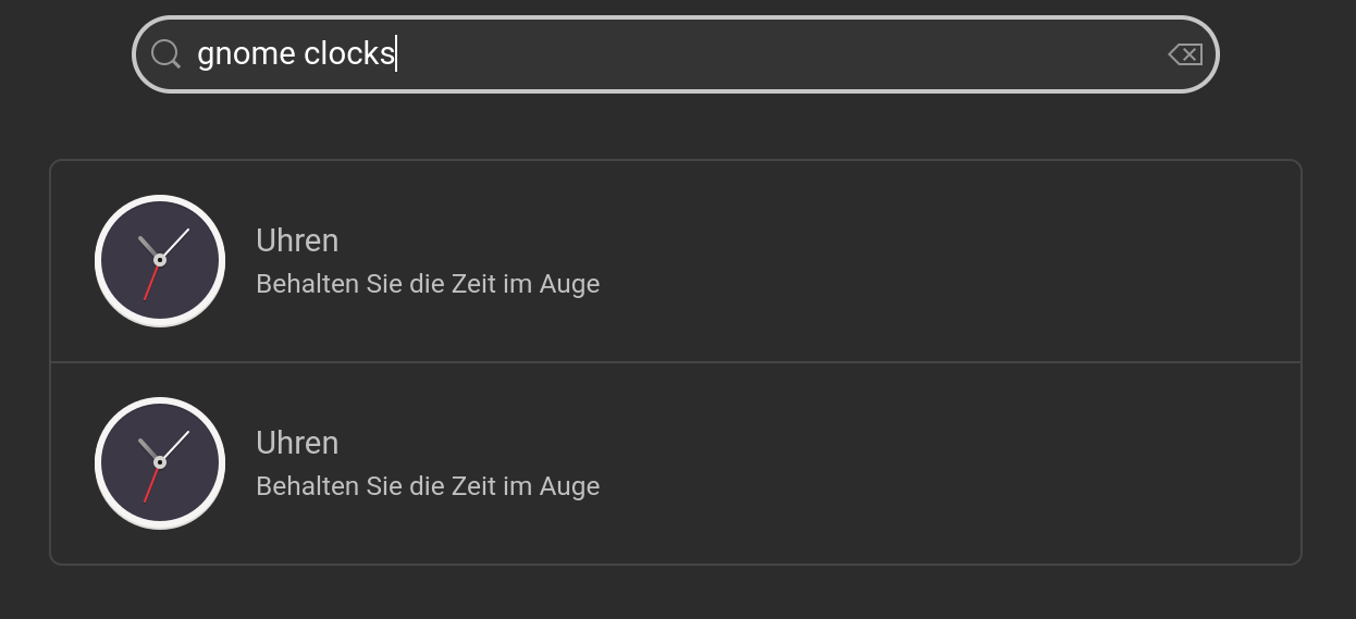 Thx, Ponce-de-Leon. That is not what I see unfortunately, when typing in "gnome clocks". Apologies I can't post a screenshot...