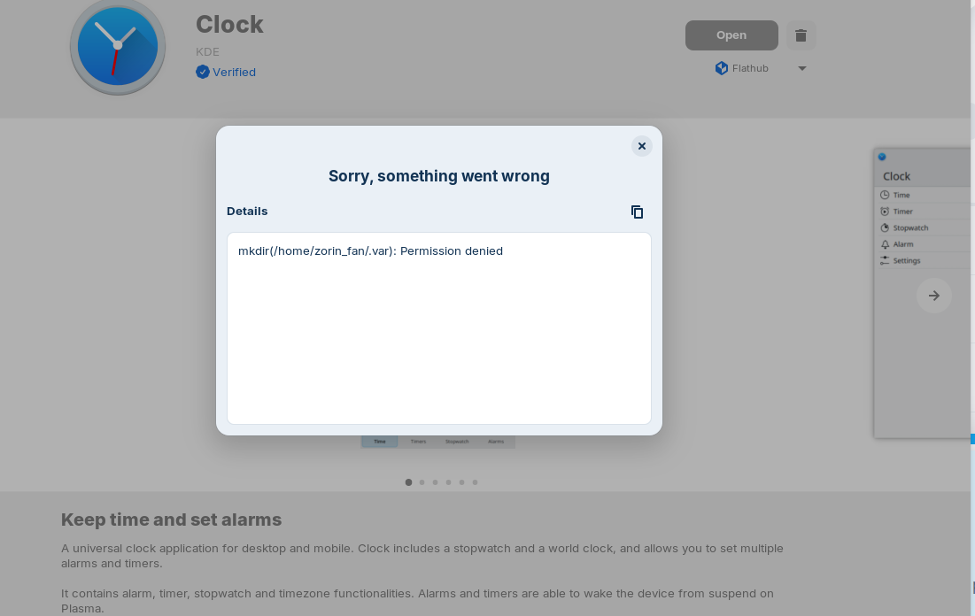 So am I going to have the same issue with this clock not working after install? Is it even worth trying? Can I not have such a simple thing as a clock (timer/alarm) on my Zorin???! More importantly, am I basically not going to be able to have ANY app that is flatpak-only?