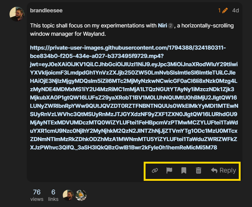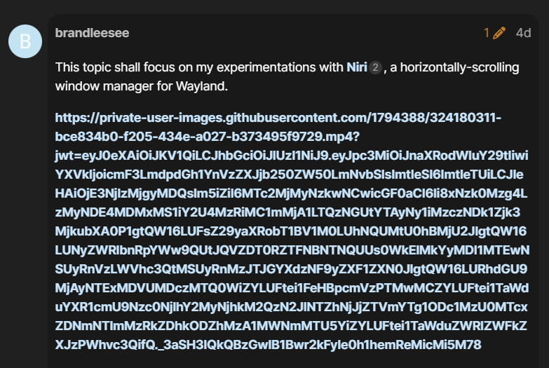 @AZorin / @zorink, could you kindly remove the link in the topmost post or restore the editing/pen button so I can remove the link and link a YouTube video or some images of Niri, please? Thank you in advance.