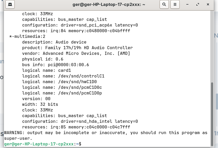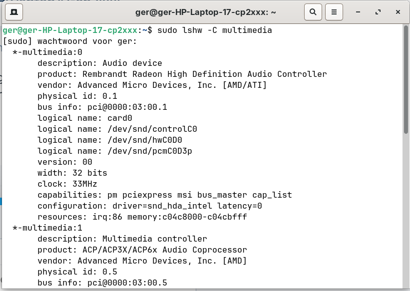 Thanks. And I have to apologize because I have made a Formatition Mistake which I corrected above. The Command have to be sudo lshw -C multimedia