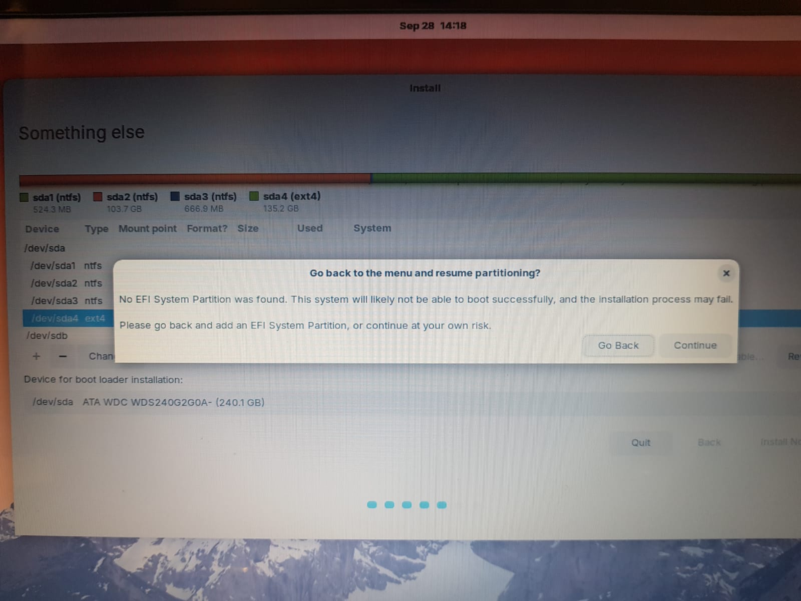But i am a bit of a beginner and dont know what EFI is and how to set it to clear the error im getting in the last screen above. My windows boot partition /dev/sda1 is not EFI though.