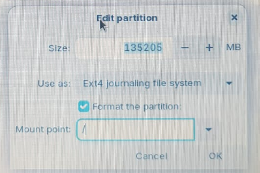 choose in the Dropdown Menu from ''Use as'' EFI-Partition. That will be the Boot Partition. And for the Rest of the free Space, You make it like on Your Picture. choose