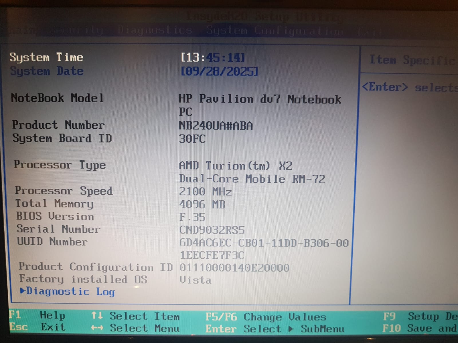 I am using a HP Pavilion dv7-1264nr. Windows 11 starts fine. BIOS screens below.