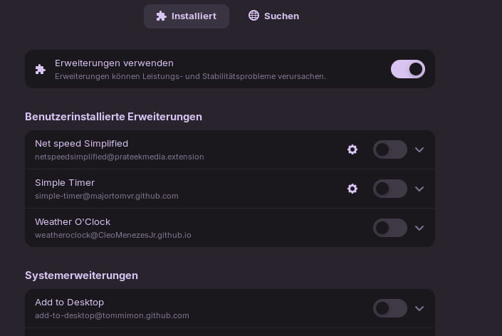 To check, if really the extensions are the problem, I deactivated all custom extensions so that it looks like this: