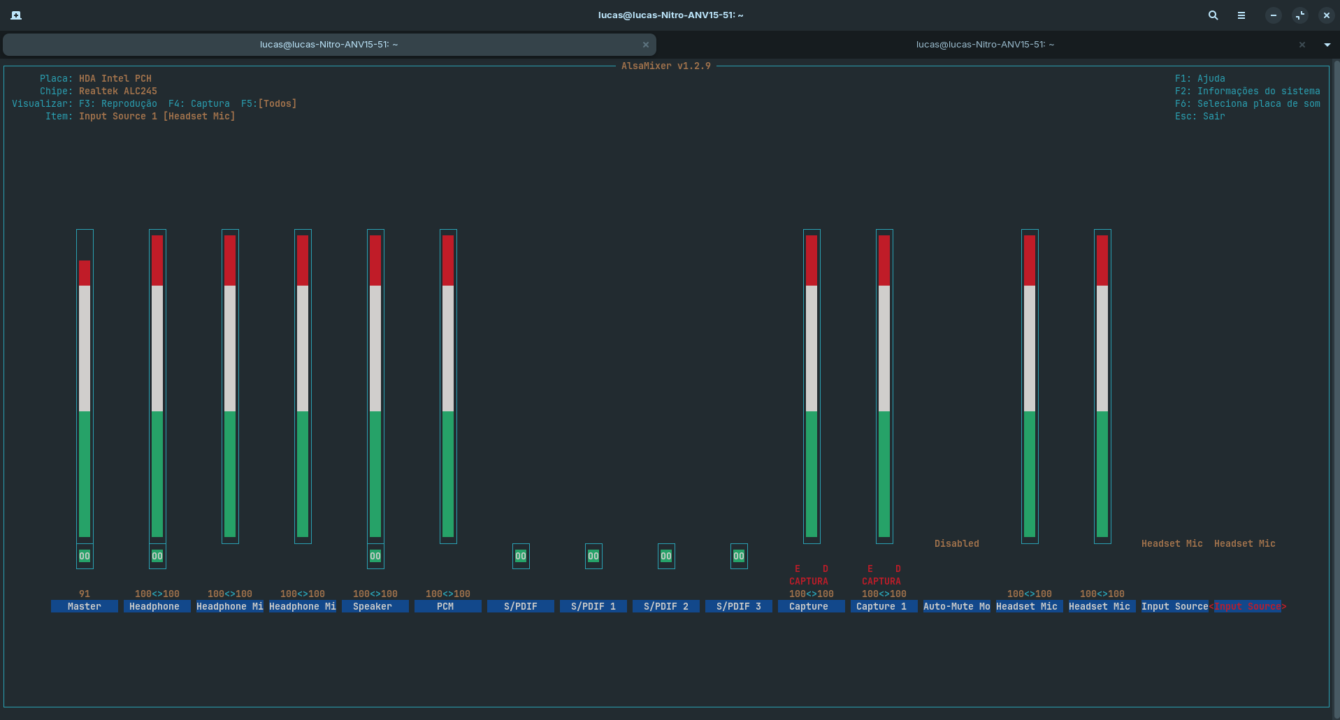 também ja utilizei um tutorial onde ensinava a colocar 2 comandos para aparecer esssa seleção porém ela so ajudou a reconhecer o microfone, ele não capta audio segue o comando que usei