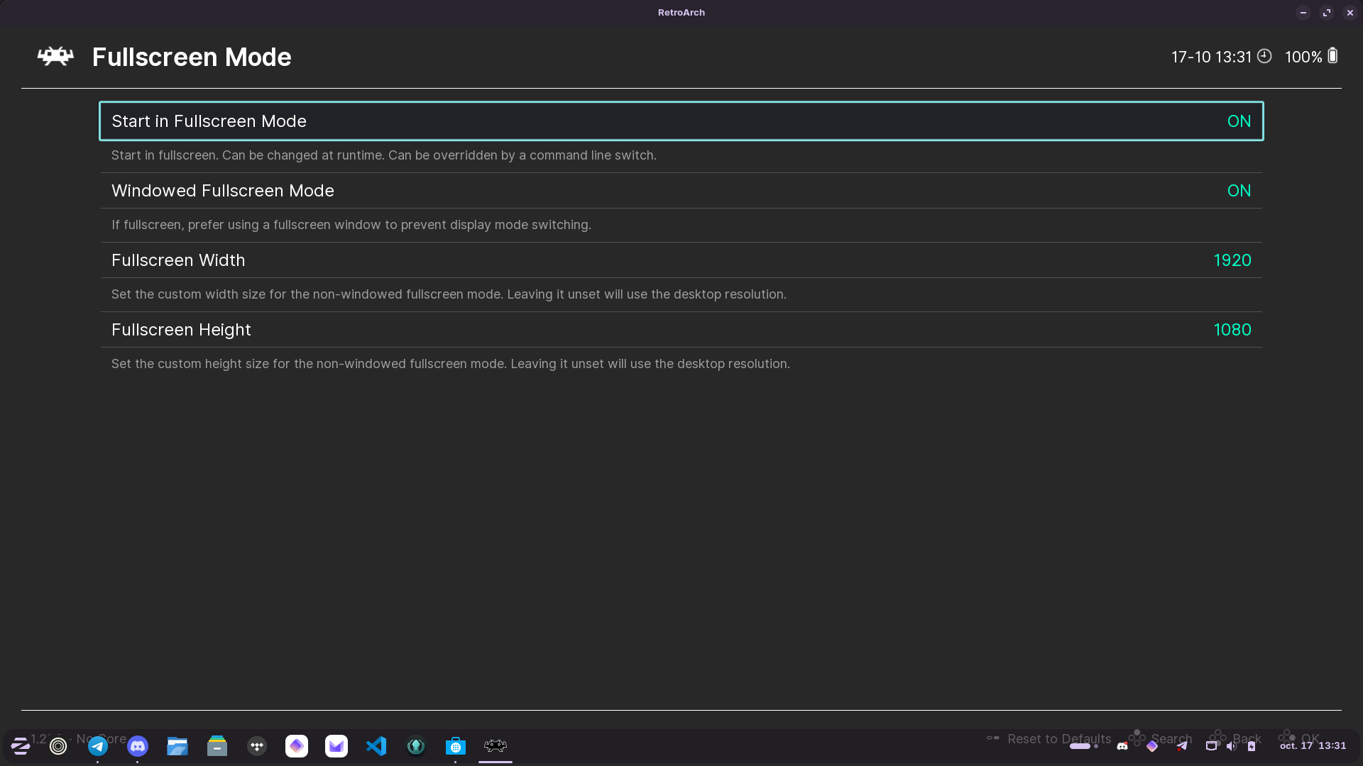 Hi! I just installed the verified flatpak package from the software manager for RetroArch, and the fullscreen mode won't take up the entire screen estate, whether in borderless or true fullscreen mode. The taskbar also won't go away for some reason. This doesn't happen in other games running through Steam or Lutris. What gives, and how does one fix these two issues?