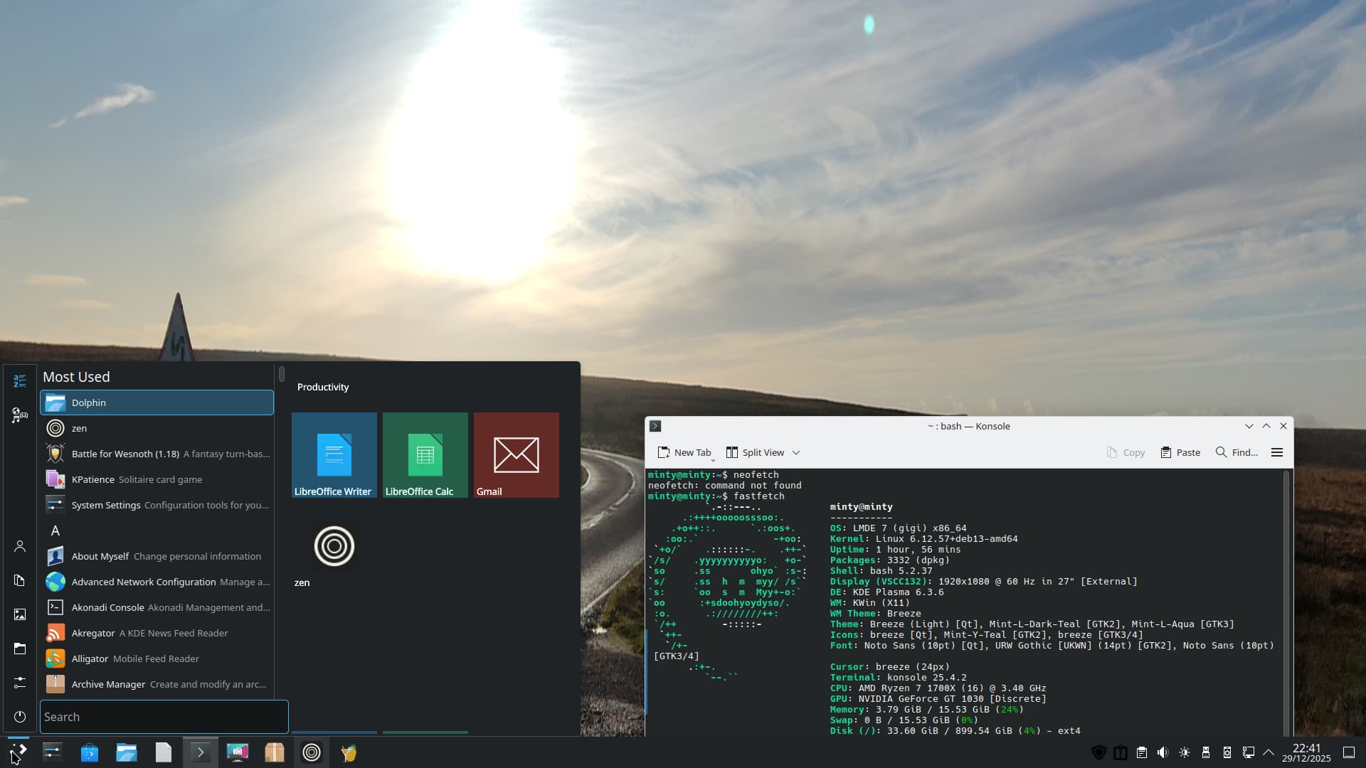 Linux Mint (LMDE 7 with Plasma 6.3.6 added - this is based on Debian 13 'trixie'):