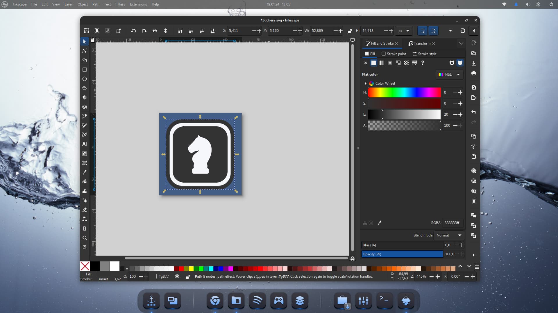 I ask because I want to change the Color from Your Delight Grey Theme. If you see my new Desktop Design above it is more black and a grey-ish white. So, I tought, that I could simply keep the white Parts of Your Icons and change the grey Parts to black. I installed Inkscape but there ist no Function to make Groupchanges. So I started to manually change the Color one by one. It is a pretty ... It is not the funniest Work, haha! To show You what I mean with the Change here are an Example: