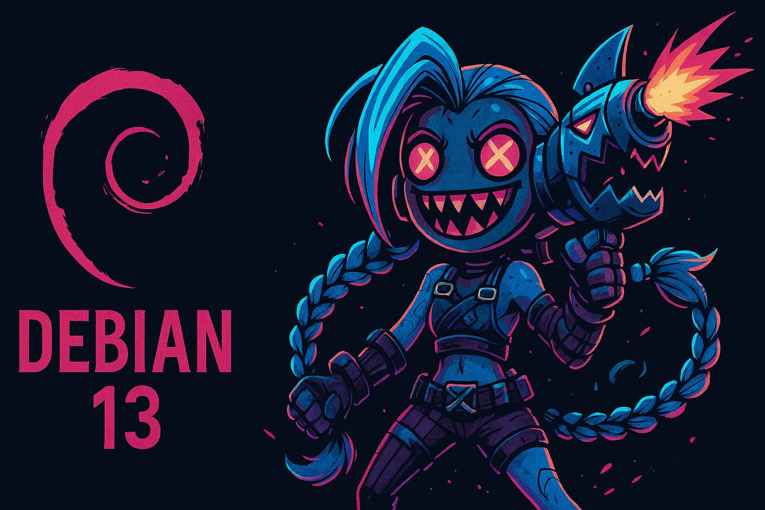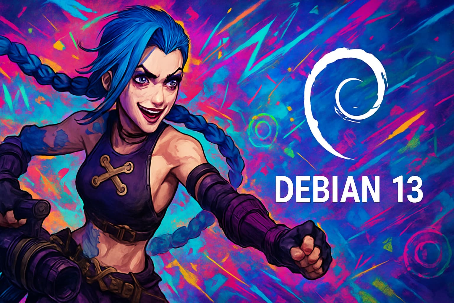Create a wallpaper of Jinx for Debian 13 using three different AI models.