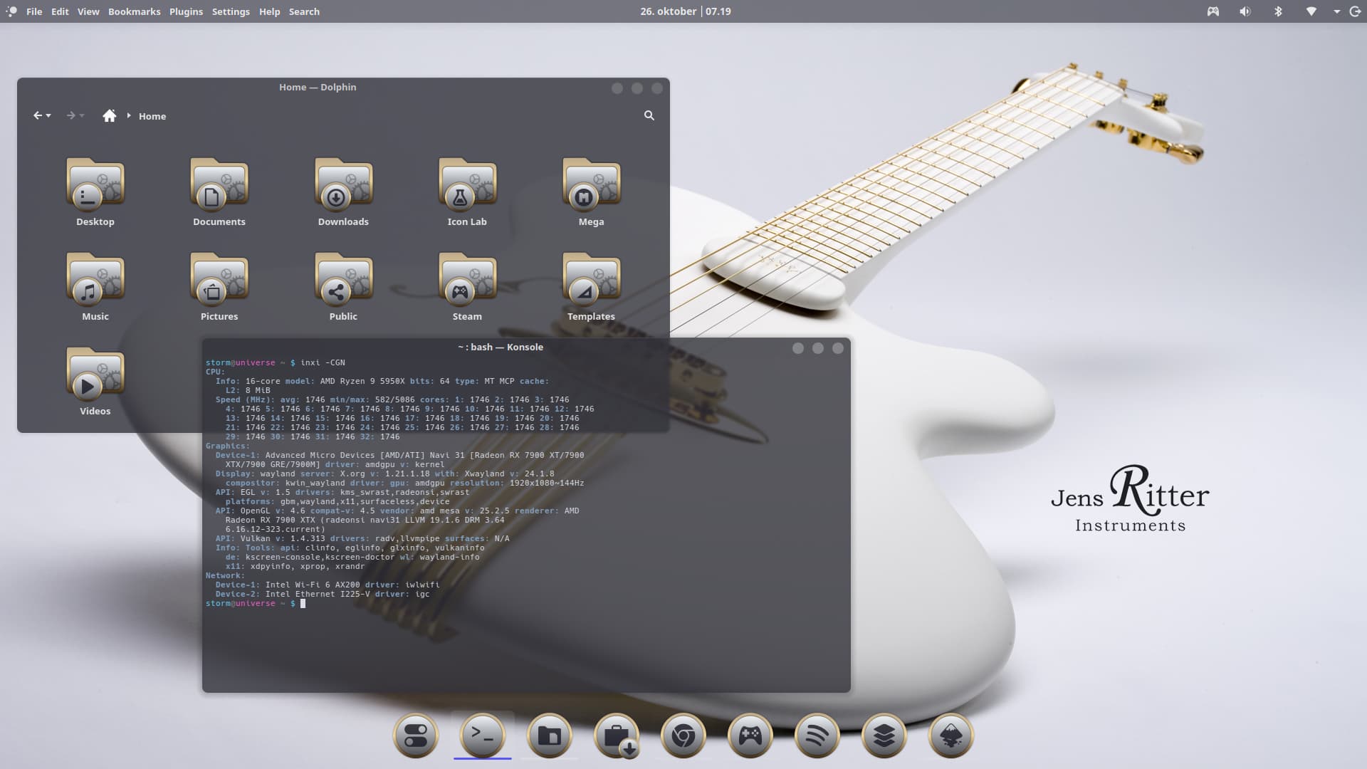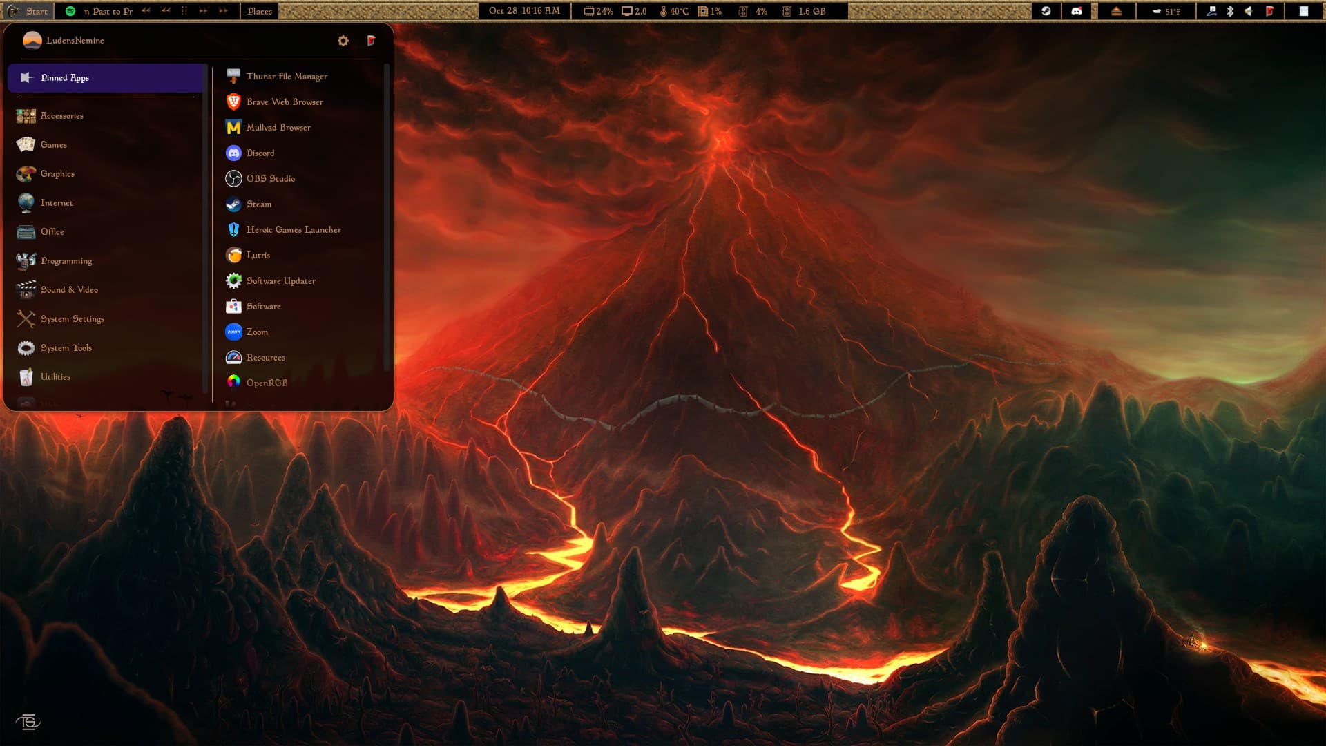 After a lot of tweaking, figuring out Gnome extensions and getting inspired to work on my own desktop theme, I put together a Morrowind-styled desktop!