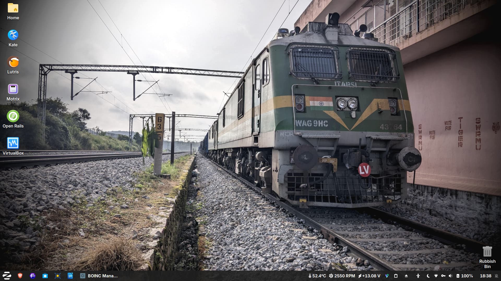 These are twin electric freight locos (WAG-9HC class) of the Indian Railways, which had brought in a wheat freight to a goods depot and were resting with the rake stabled and pantos down, at the time of capture.