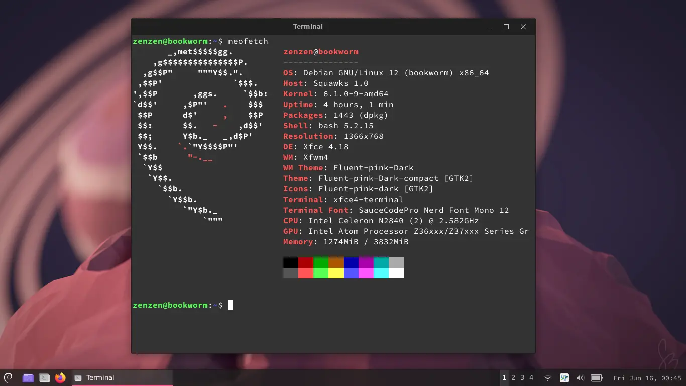 I've been using it all day for my normal tasks with very nice results, points in favor of both XFCE and Debian. Here are some screenshots: