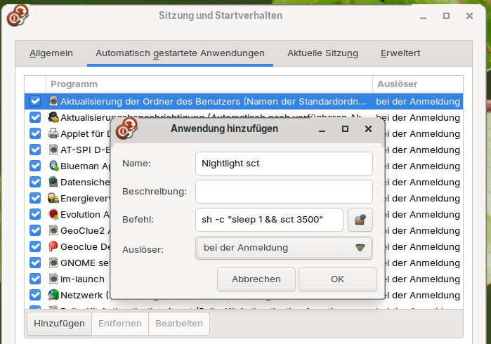 Try it this way. Go to settings >session and startup >application autostart and add a new entry. I had to play around until it worked. There was an initializing problem. On my Zorin virtual machine sct doesn´t work, so I can´t test it for you. Maybe it also works on your machine with just