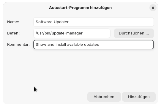 Go to Startup Applications and add a new entry. I'm not sure if it is the same as in Zorin 17, but you can check when you right-click on Zorin start menu, select edit menu and at system tools> administration search for software updater (I'm not quite sure what the name in English is, in German it is Update management, is has an circle orange icon with two arrows). Then click on properties and you can see the informations for the launcher, what name and command it has. Note or copy these informations to create a new launcher at autostart programms. I hope it is similar on your system to find it.