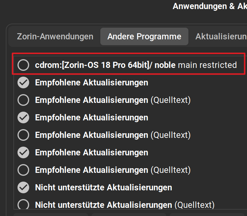 E: The repository 'cdrom://Zorin-OS 18 Core 64bit noble Release' does not have a Release file.
