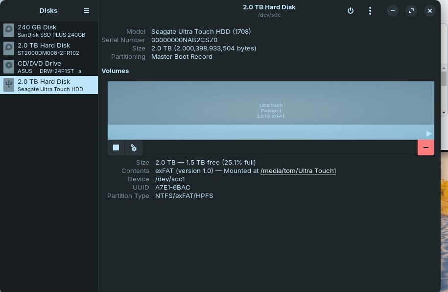 Edit. The external drive also has no problem with Lucky Backup, though it gives itself a folder called "tom" that I never asked for