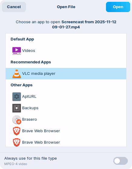 Or, when you right-click on it, select the "Open with" option and check the option at the bottom to "Always use for this file type". This will create an association based on the file extension, so you might need to repeat this for other media files that don't match i.e., mp4 and webm videos.