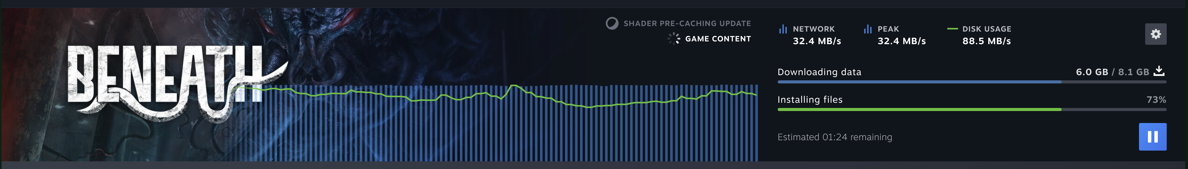 EDIT: I just bought a new horror game called Beneath. I had a chance to take a new screenshot, which shows your download speed lines up with mine, with only a 2% difference.