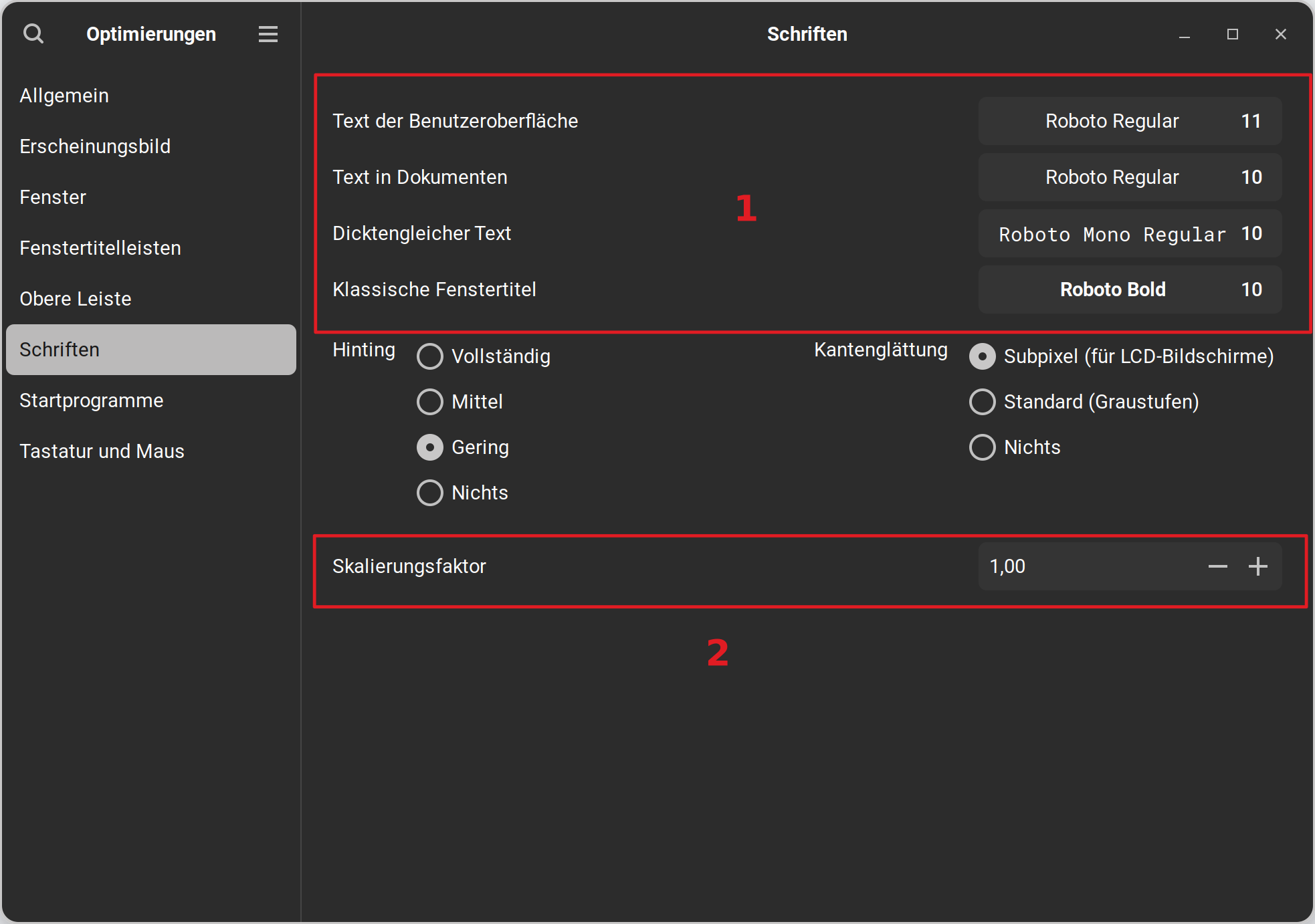After installing it, open it and go to the Fonts Tab. there you can set up the Fontsize (1) or increase the Scale Factor (2). You could play with it a bit to see if You get a for You fitting Result.