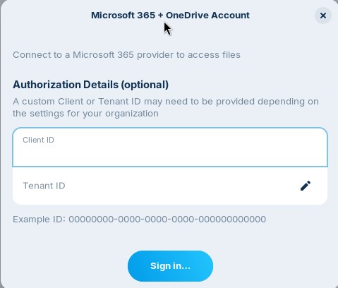 The solution was so simple that I didn't even think of it. You have to click on “sign in” without filling in the “client ID” or “tenant ID,” then you will be redirected to log in to the browser, then accept permissions, and that's it. I've tried it out a bit, and I'm really liking this native integration that comes with Gnome