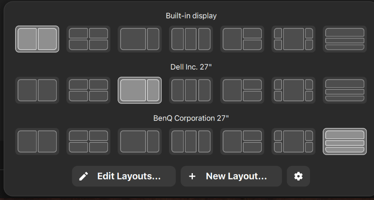 I've got layouts set for each of the three monitors I use at work: